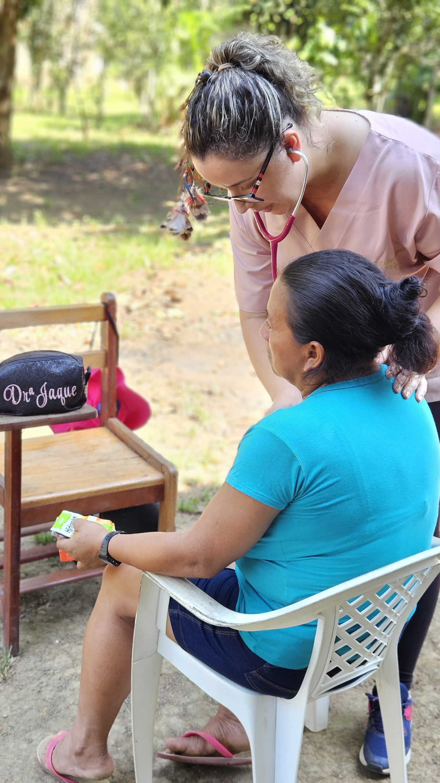 “As comunidades indígenas tem tantas necessidades! Gostaria de ter feito muito mais por cada um que tive contato, mas tenho certeza de que o pouco para mim, foi o necessário para muitos; mesmo em meio a tantas diferenças senti sua alegria, principalmente das crianças, sempre com um sorriso no rosto, um carinho a oferecer. Que Deus tremendo! Ama e cuida dos seus filhos de forma individual e com suas particularidades… Sentimento é de gratidão, a intenção foi ajudar as pessoas através dos meus conhecimentos, mas houve uma troca de experiências e conhecimento, saí preenchida e leve com tanto carinho recebido, espero que essa seja a primeira missão, de muitas outras, que eu possa viver com o dever de missão a cada dia.” – Dra. Jaqueline Bustamante, médica pós graduada em Medicina de Família e Comunidade
